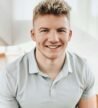 A large supermarket aisle displays a variety of colorful packaged goods arranged neatly on shelves. A person in a blue shirt stands in front of the shelves, holding a list or paper, likely checking items or inventory. The view from above shows an extensive selection of products, indicating a wide variety of options available to shoppers.